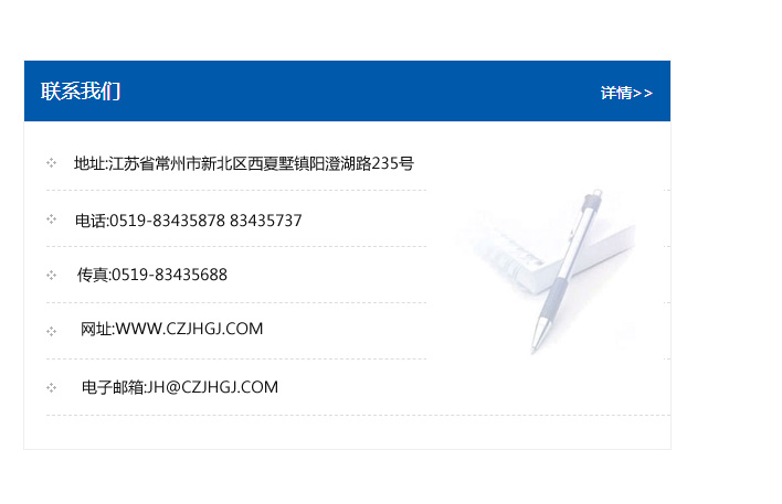地址:常州市新北區友邦商務大廈1幢16、17層  電話:0519-85101652  傳真:0519-85112595  郵編:213022  網址:www_cz-jiayue_cn.lsc-express.com  郵箱:xiajifengaa@163.com
